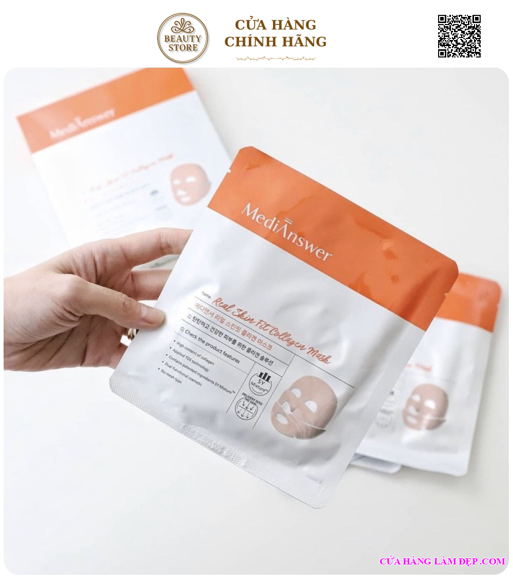 Tại hệ thống Cửa Hàng Làm Đẹp, sản phẩm Mặt Nạ MediAnswer Real Skin Fit Collagen Mask Từ Hàn Quốc 37G có giá 75.000 VNĐ