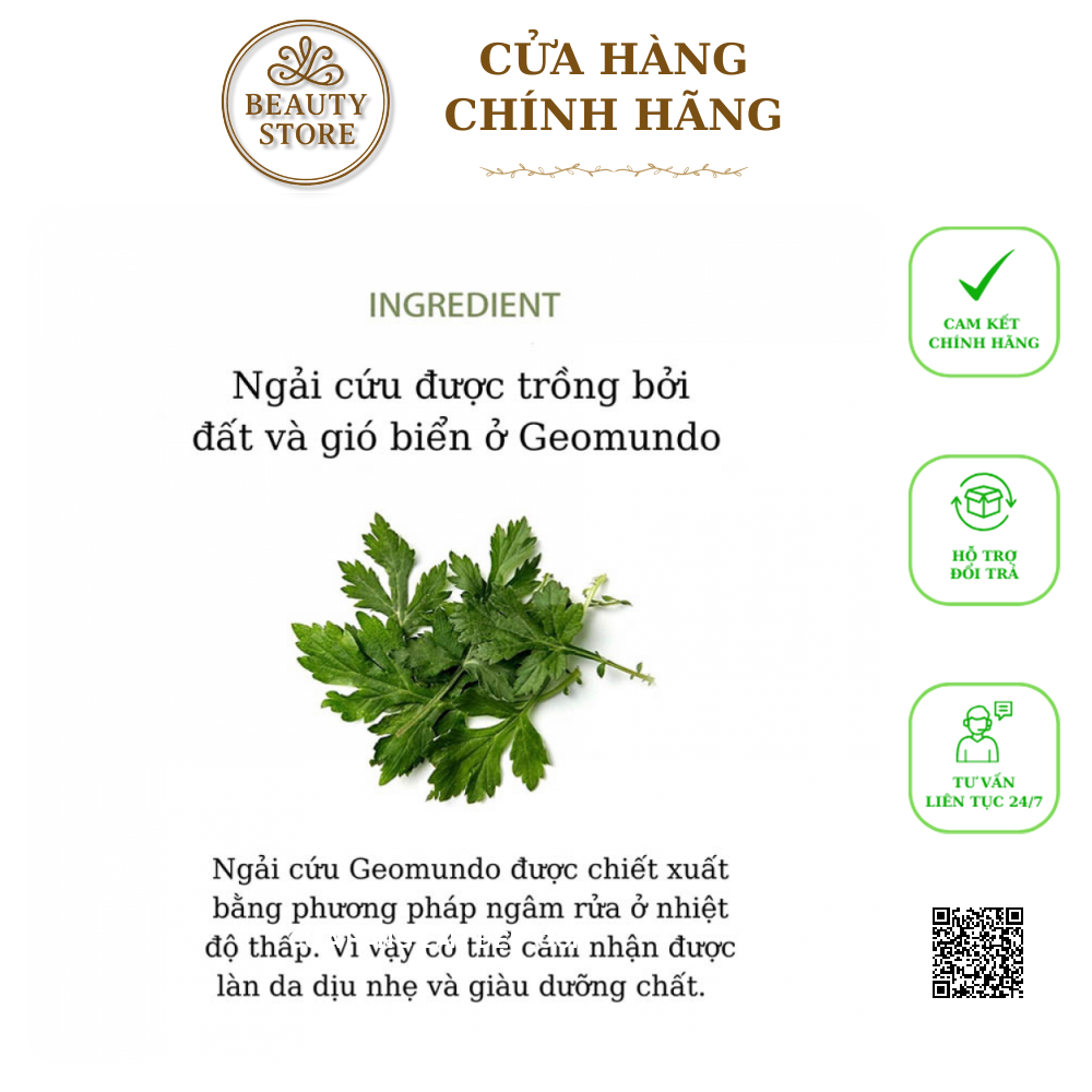 - Bên cạnh những tác dụng cực tốt đối với sức khoẻ, ngải cứu còn là thần dược dưỡng sáng, phục hồi da hiệu quả và cực kì an toàn, thích hợp với mọi làn da. Đây cũng chính là lí do thành phần thiên nhiên này được lựa chọn làm “điểm sáng” của mặt nạ Geomundo Sea Wind Mugwort Cream Mask.