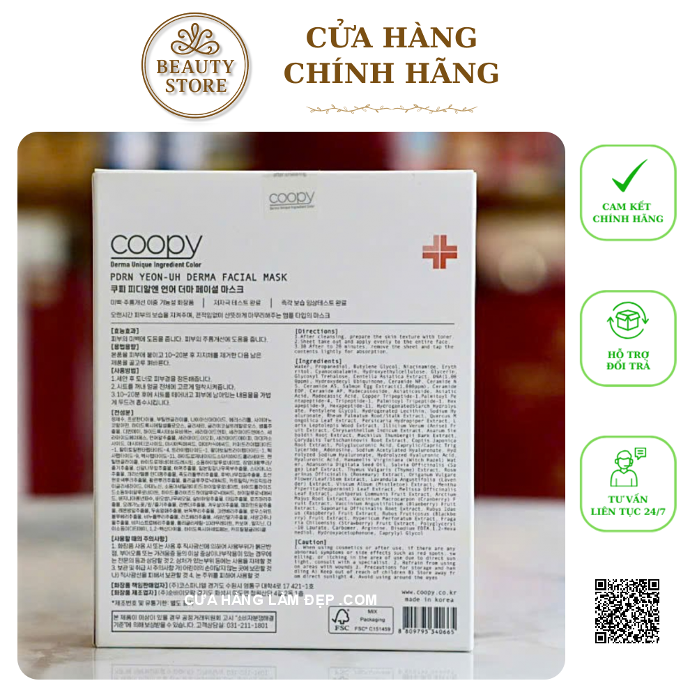 Tại Hệ Thống Cửa Hàng Làm Đẹp Sản Phẩm Mặt Nạ Phục Hồi Da Coopy PDRN Yeon-Uh Derma Facial Mask Hàn Quốc Hộp 5 Miếngk Có Giá: 200.000 VNĐ