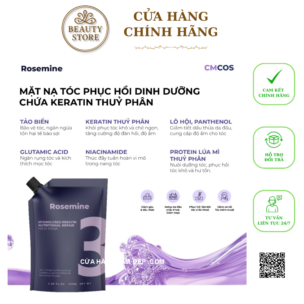 Giới Thiệu Mặt Nạ Ủ Tóc Rosemine Hair Mask Phục Hồi hỗ trợ ngừa Gãy Rụng Tóc: