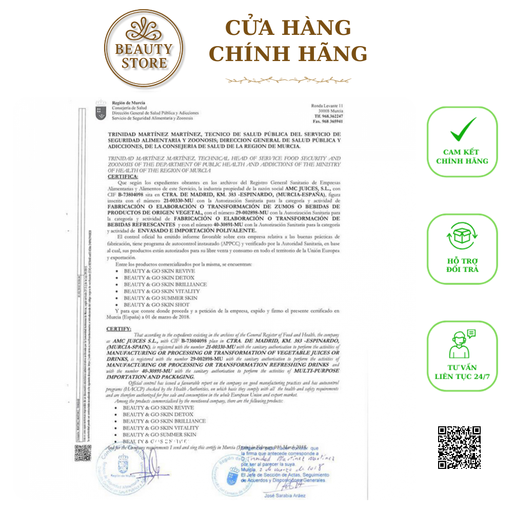 Sản phẩm Nước Uống Skinshot Đẹp Da Chống Lão Hóa Liệu Trình 30 Ngày có xuất xứ từ Tây Ban Nha.