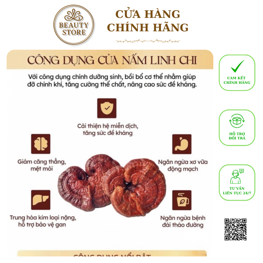 100% nấm linh chi tự nhiên cao cấp – được tuyển chọn từ những tai nấm chất lượng nhất.