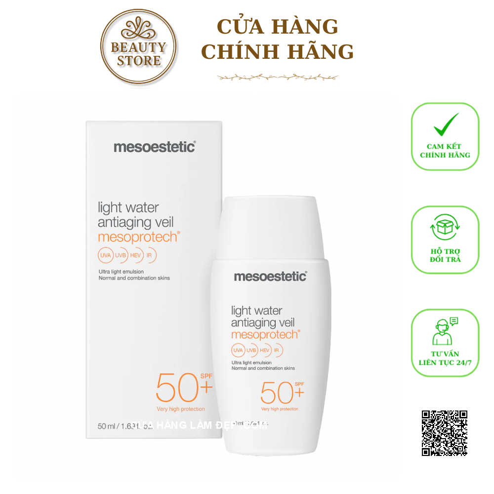 1. Nhũ Tương hỗ trợ Hỗ Trợ Chống Nắng Mesoestetic Mesoprotech Light Water Antiaging Veil SPF50+ có tốt không?