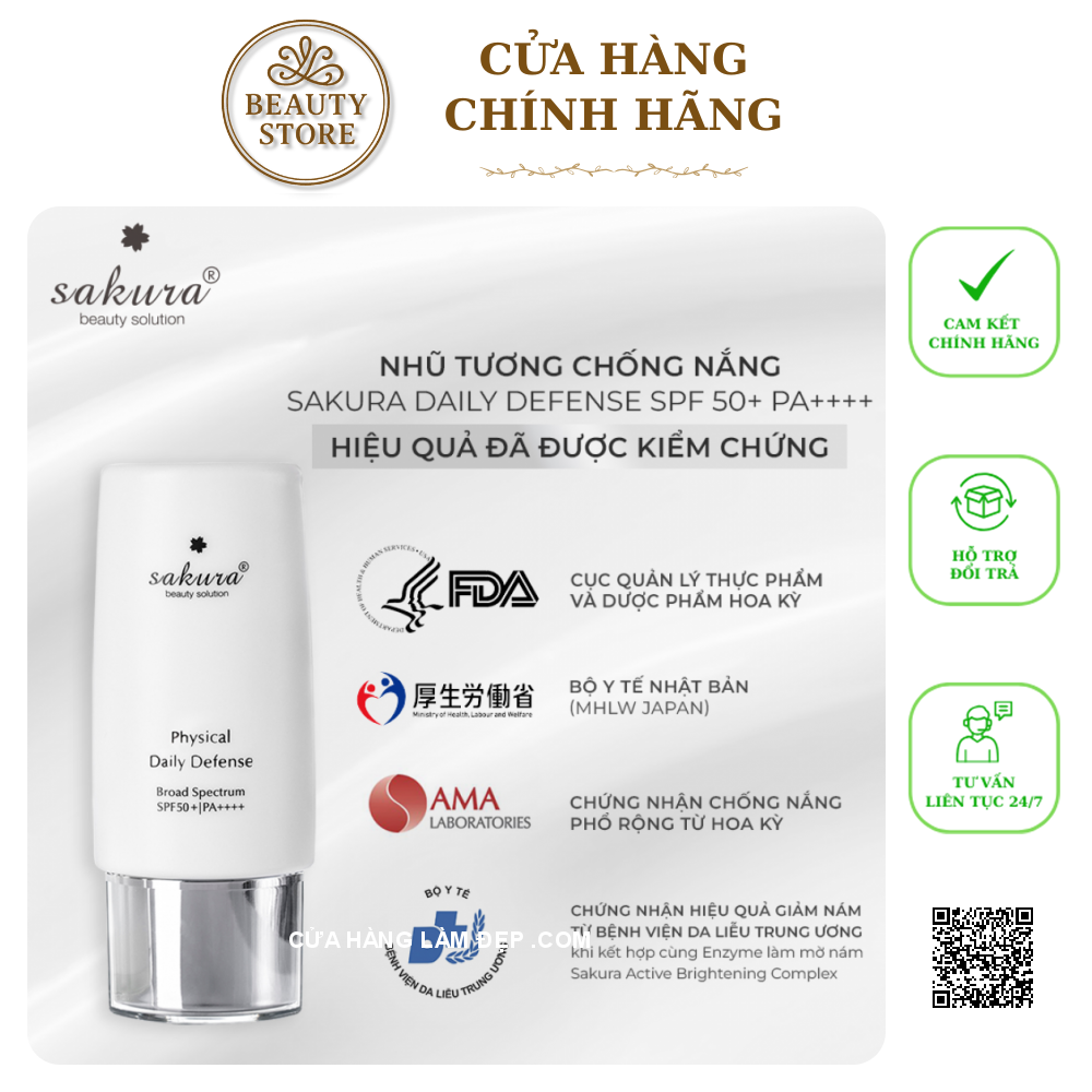 6. Địa Chỉ Mua Nhũ Tương hỗ trợ Hỗ Trợ Chống Nắng Vật Lý Sakura Physical Daily Defense SPF 50+ PA++++ Chính Hãng: