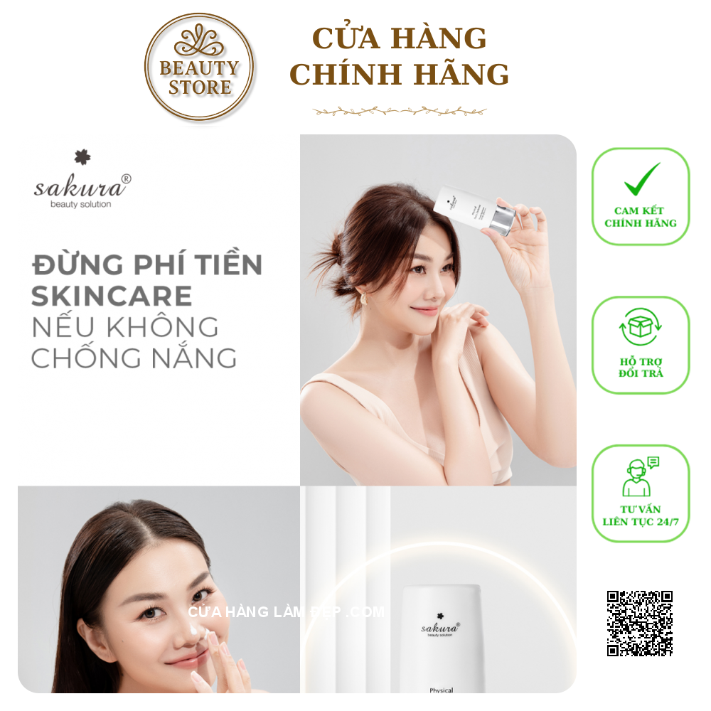 Tại hệ thống Cửa Hàng Làm Đẹp, Nhũ Tương hỗ trợ Hỗ Trợ Chống Nắng Vật Lý Sakura Physical Daily Defense SPF 50+ PA++++ có giá: 850.000 VND
