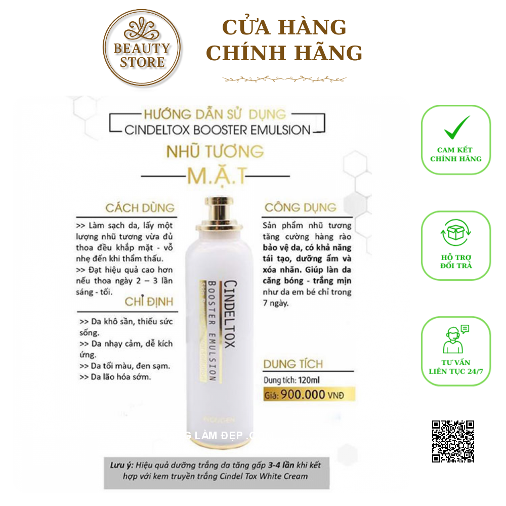 - Tại Hệ thống Cửa hàng làm đẹp Nhũ Tương Dưỡng Trắng Cindel Tox Booster Emulsion 120ml Có Gía: 593.000 VNĐ