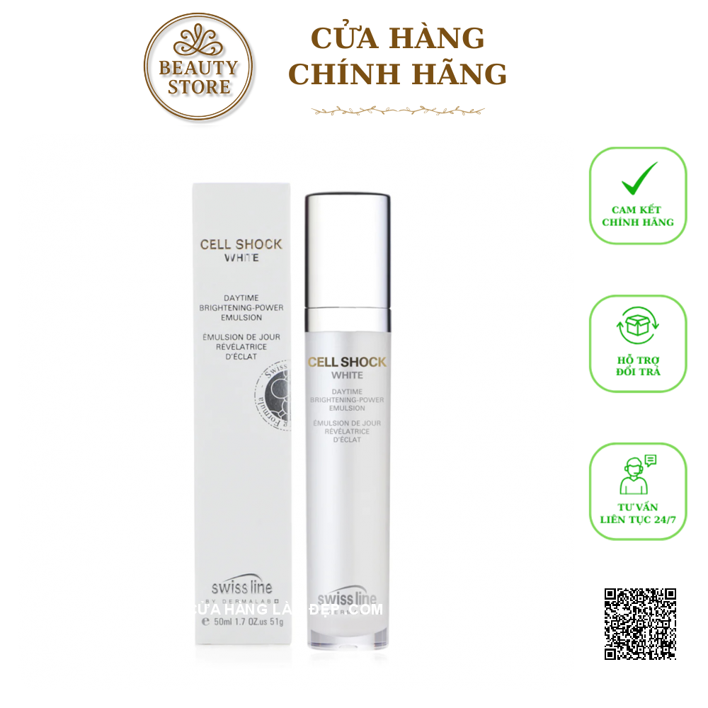 - Bạn có thể tìm mua Nhũ Tương Dưỡng Trắng Da Hỗ Trợ Ngừa Lão Hóa Swissline Cell Shock White Daytime Brightening-Power Emulsion qua website: cuahanglamdep.com