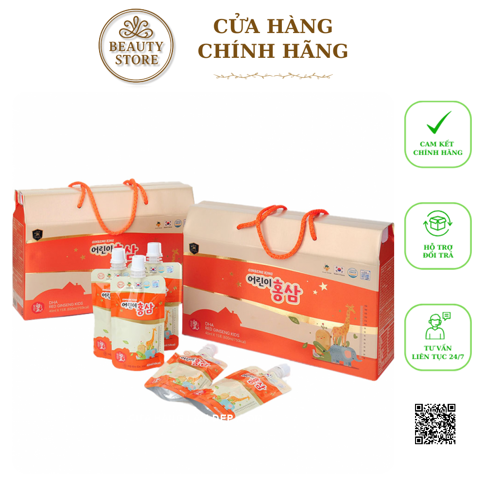Tại hệ thống cửa hàng làm đẹp, Nước Hồng Sâm Baby Ginseng King DHA Red Ginseng Kids có giá: 560.000 VND