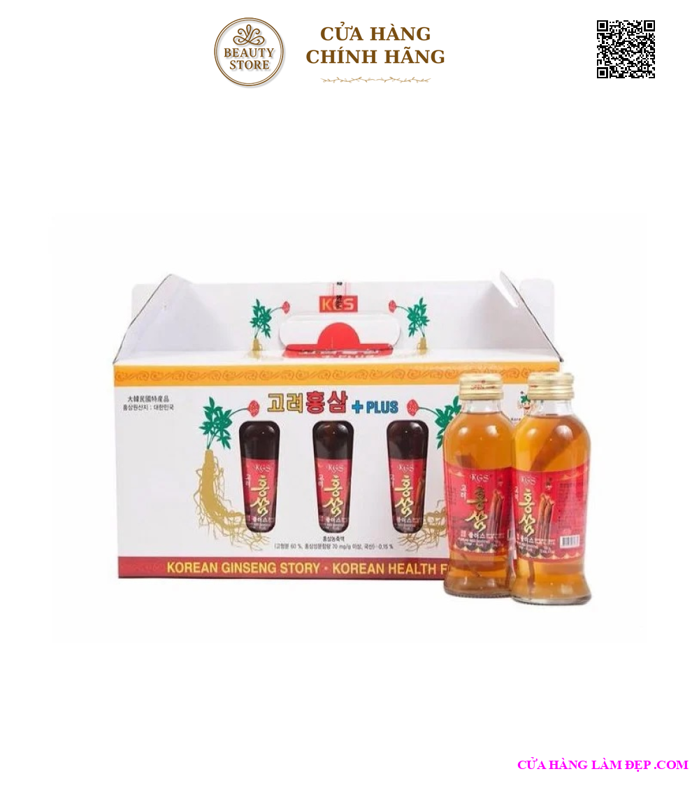 Tại hệ thống cửa hàng làm đẹp, Nước Hồng Sâm Có Củ KGS Korean Red Ginseng Story Plus có giá: 400.000 VND