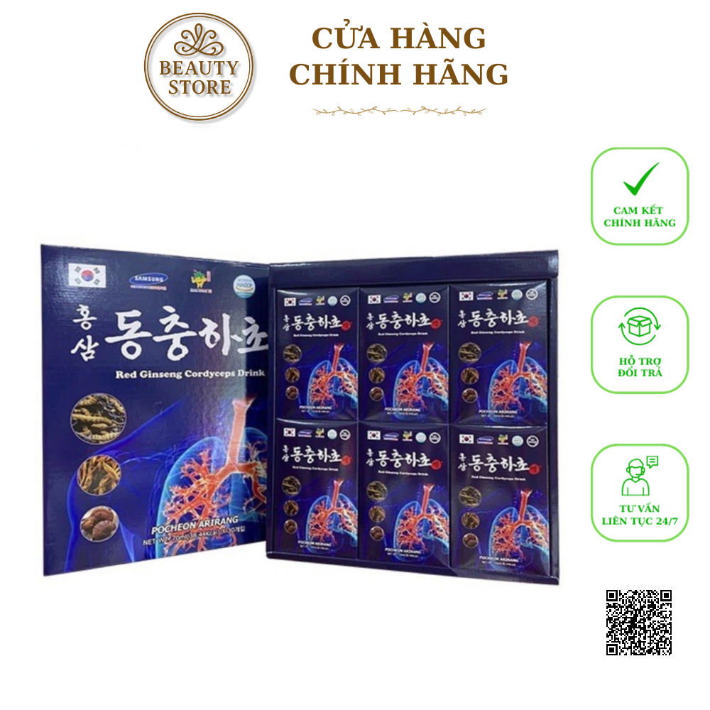 Tại hệ thống Cửa hàng làm đẹp, Nước Hồng Sâm Đông Trùng Hạ Thảo Bổ Phổi Pocheon Red Ginseng Cordyceps Drink có giá: 650.000 VND