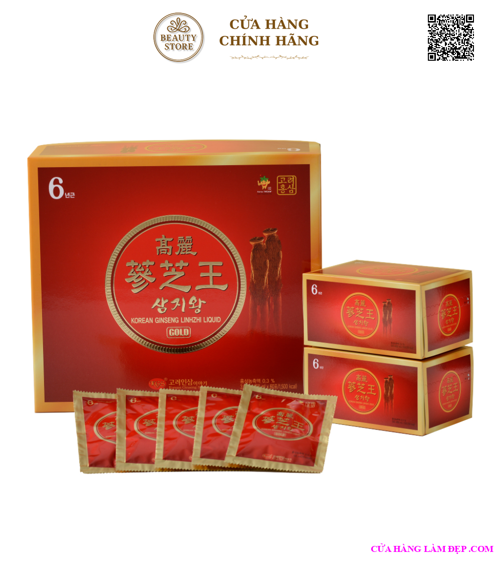 Tại hệ thống cửa hàng làm đẹp, Nước Hồng Sâm Linh Chi KGS Korean Ginseng Linhzhi Liquid Gold 60 Gói có giá: 1.350.000 VND