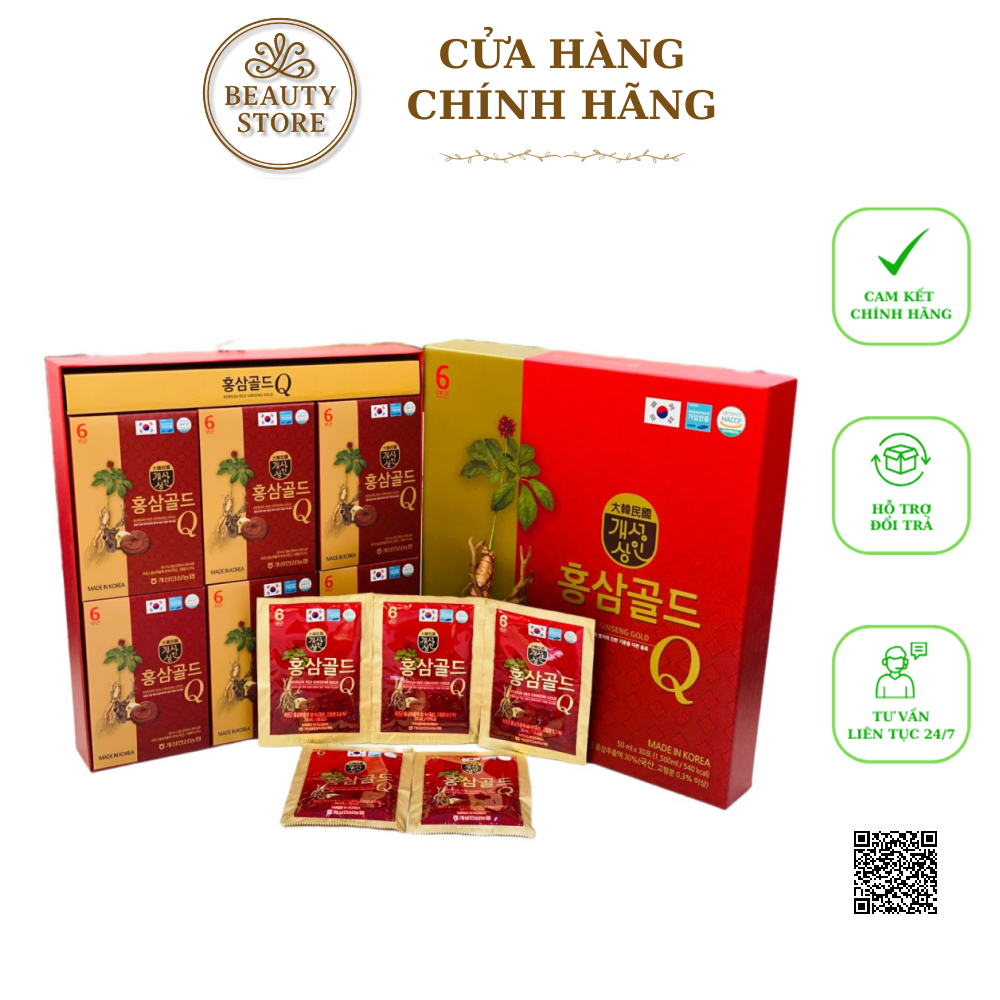 Tại hệ thống cửa hàng làm đẹp, Nước Hồng Sâm Nhung Hươu Linh Chi Hansusam Korean Red Ginseng Gold Q có giá: 490.000 VND
