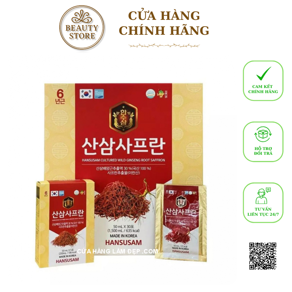 - Bạn có thể tìm mua Nước Hồng Sâm Nhụy Hoa Nghệ Tây Hansusam Cultured Wild Ginseng Root Saffron qua website: cuahanglamdep.com