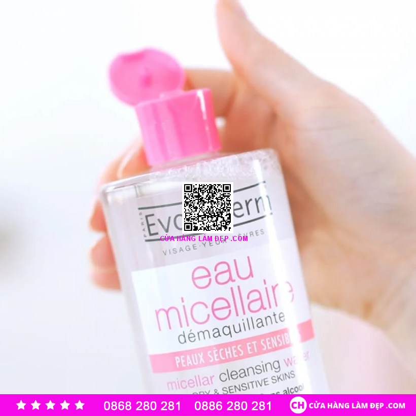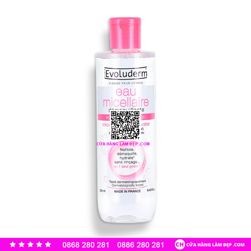 Evoluderm Micellar Cleansing Water Nước Tẩy Trang Cho Da Khô Và Nhạy Cảm được khách hàng của Hệ Thống Cửa Hàng Làm Đẹp đánh giá cao.