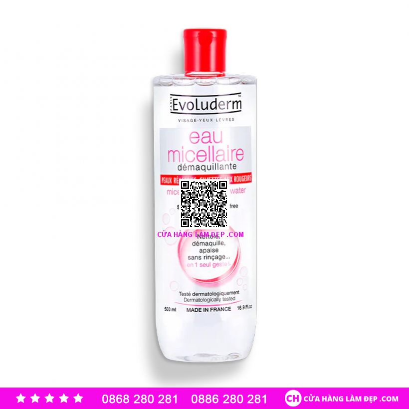 Evoluderm Micellar Cleansing Water Nước Tẩy Trang Cho Da Mẫn Cảm được khách hàng của Hệ Thống Cửa Hàng Làm Đẹp đánh giá cao.