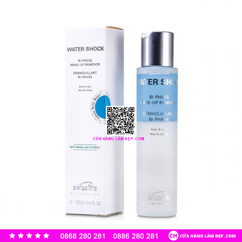 Nước Tẩy Trang Mắt Môi Swissline Water Shock Bi-Phase Make-Up Remover được khách hàng của Hệ Thống Cửa Hàng Làm Đẹp đánh giá cao.