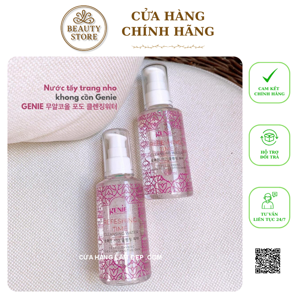 1. Nước Tẩy Trang Nho Không Cồn Genie Refeshing Time có tốt không?