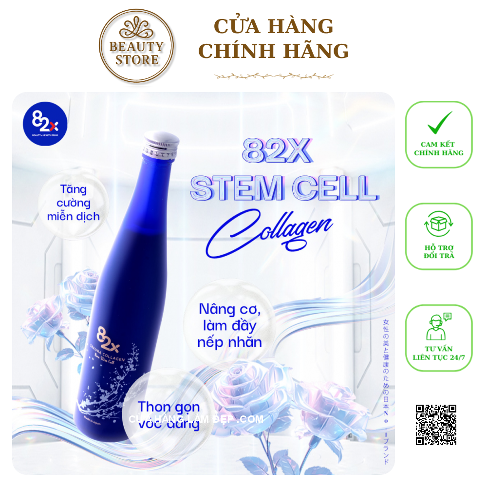 82X Stem Cell Collagen là phiên bản nâng cấp của 82X Sakura Collagen, với 120.000mg collagen từ da cá ngừ đại dương được thủy phân siêu nhỏ bằng Công nghệ Kosoteki độc quyền, 82 thực vật lên men, men peptide cùng các thành phần quý giá khác từ tự nhiên. Bên cạnh các công dụng được kế thừa như: nâng cơ, làm đầy nếp nhăn và duy trì thon gọn vóc dáng, 82X Stem Cell Collagen được bổ sung thêm Tinh Chất Tinh chất hoa hồng Damask từ Bulgaria giúp hỗ trợ trẻ hóa tuổi sinh học.