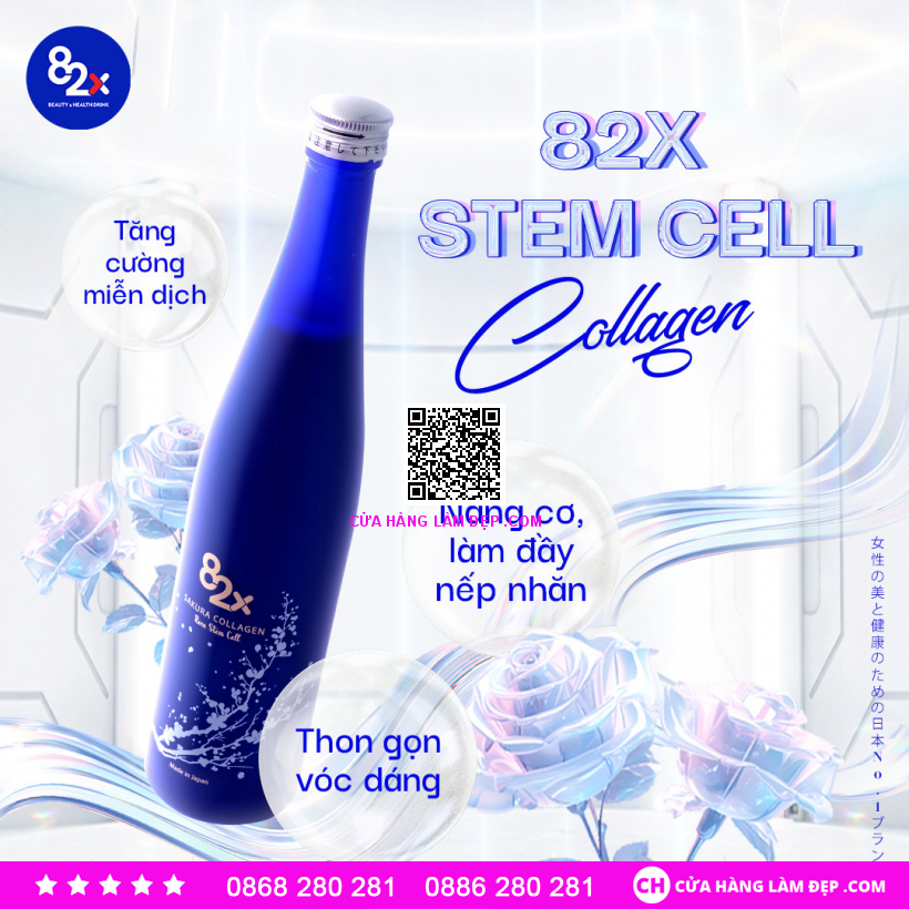 82X Stem Cell Collagen là phiên bản nâng cấp của 82X Sakura Collagen, với 120.000mg collagen từ da cá ngừ đại dương được thủy phân siêu nhỏ bằng Công nghệ Kosoteki độc quyền, 82 thực vật lên men, men peptide cùng các thành phần quý giá khác từ tự nhiên. Bên cạnh các công dụng được kế thừa như: nâng cơ, làm đầy nếp nhăn và duy trì thon gọn vóc dáng, 82X Stem Cell Collagen được bổ sung thêm Tinh Chất Tinh chất hoa hồng Damask từ Bulgaria giúp hỗ trợ trẻ hóa tuổi sinh học.