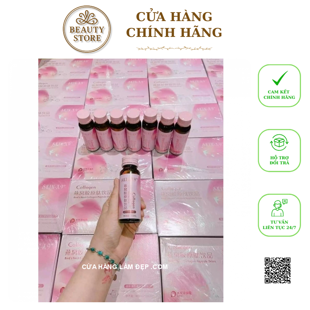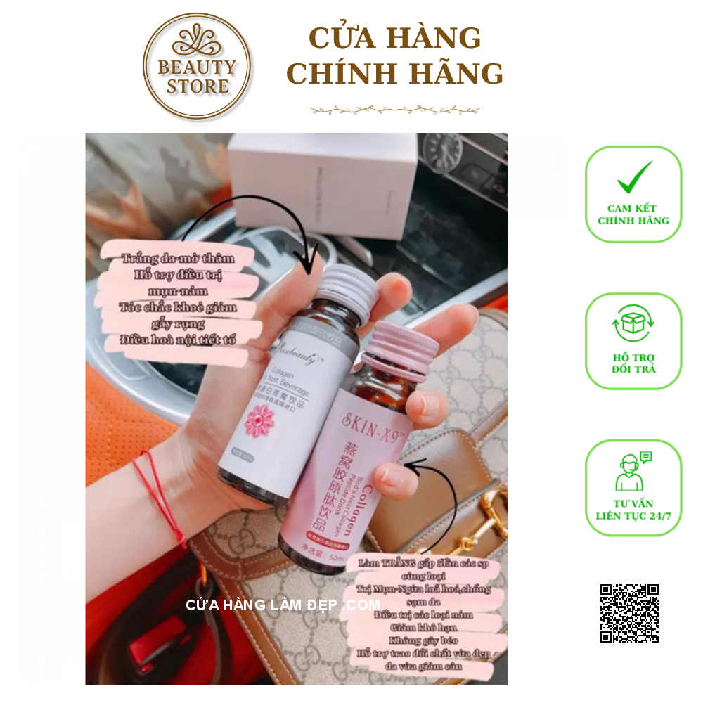 - Bạn có thể tìm mua Nước Uống Collagen Skin-X9 Hồng Giảm Mụn, Nám, Tàn Nhang qua website: cuahanglamdep.com