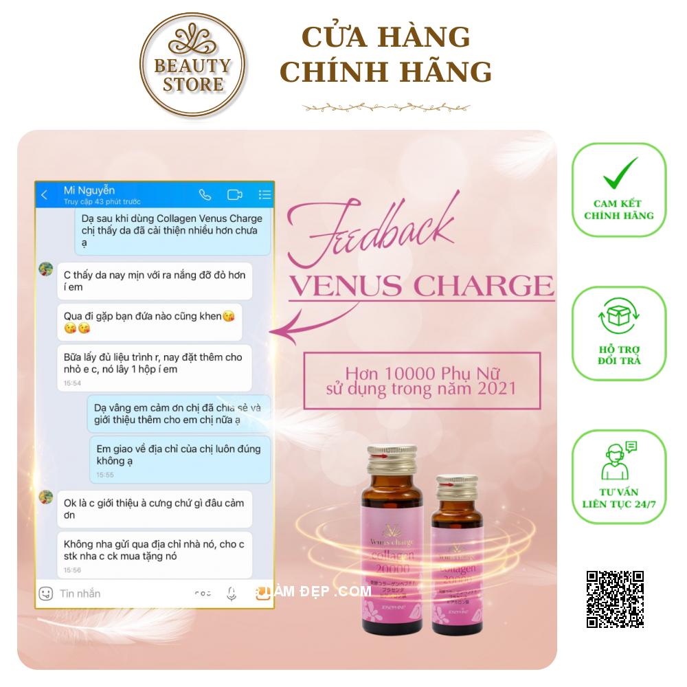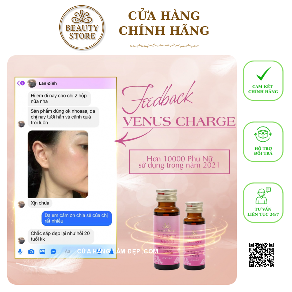 Nước uống Collagen Venus Charge 20,000mg được khách hàng của Hệ Thống Cửa Hàng Làm Đẹp đánh giá cao.