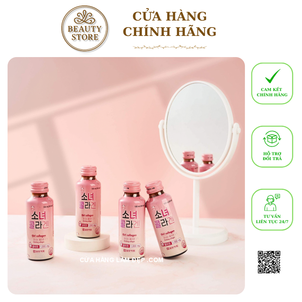 Nước uống Girl Collagen Hàn Quốc - Nước uống tăng cường sức khỏe, trẻ hóa làn da bổ sung collagen với hàm lượng lên tới 1000mg, cùng hàng loạt các thành phần làm đẹp sáng giá như hyaluronic acid, vitamin C, ceramide,…cung cấp năng lượng cho cơ thể khỏe mạnh, đánh bật mọi dấu hiệu lão hóa.