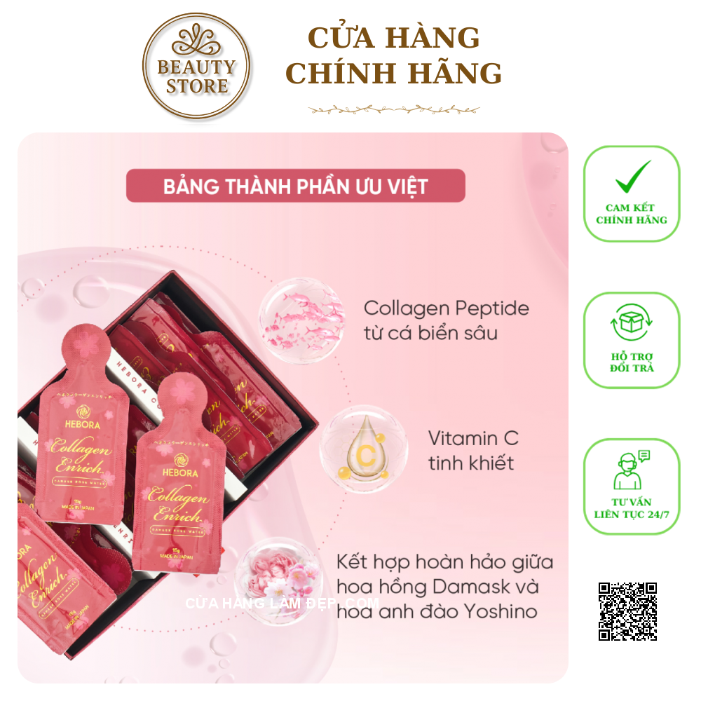 Ngay từ khi ra mắt, nước uống làm đẹp da, hỗ trợ ngừa lão hóa Hebora Collagen Enrich, đặc biệt là sản phẩm Hebora Collagen dạng gói từ thương hiệu danh tiếng hàng đầu Nhật Bản đã nhận được sự đón nhận nồng nhiệt của đông đảo phụ nữ trên khắp xứ sở hoa anh đào và nhanh chóng lan tỏa trên toàn thế giới, trong đó có Việt Nam. Sản phẩm được hơn 3.000.000 phụ nữ sử dụng và trở thành “bảo bối” làm đẹp mà rất nhiều chị em phụ nữ mê mẩn.