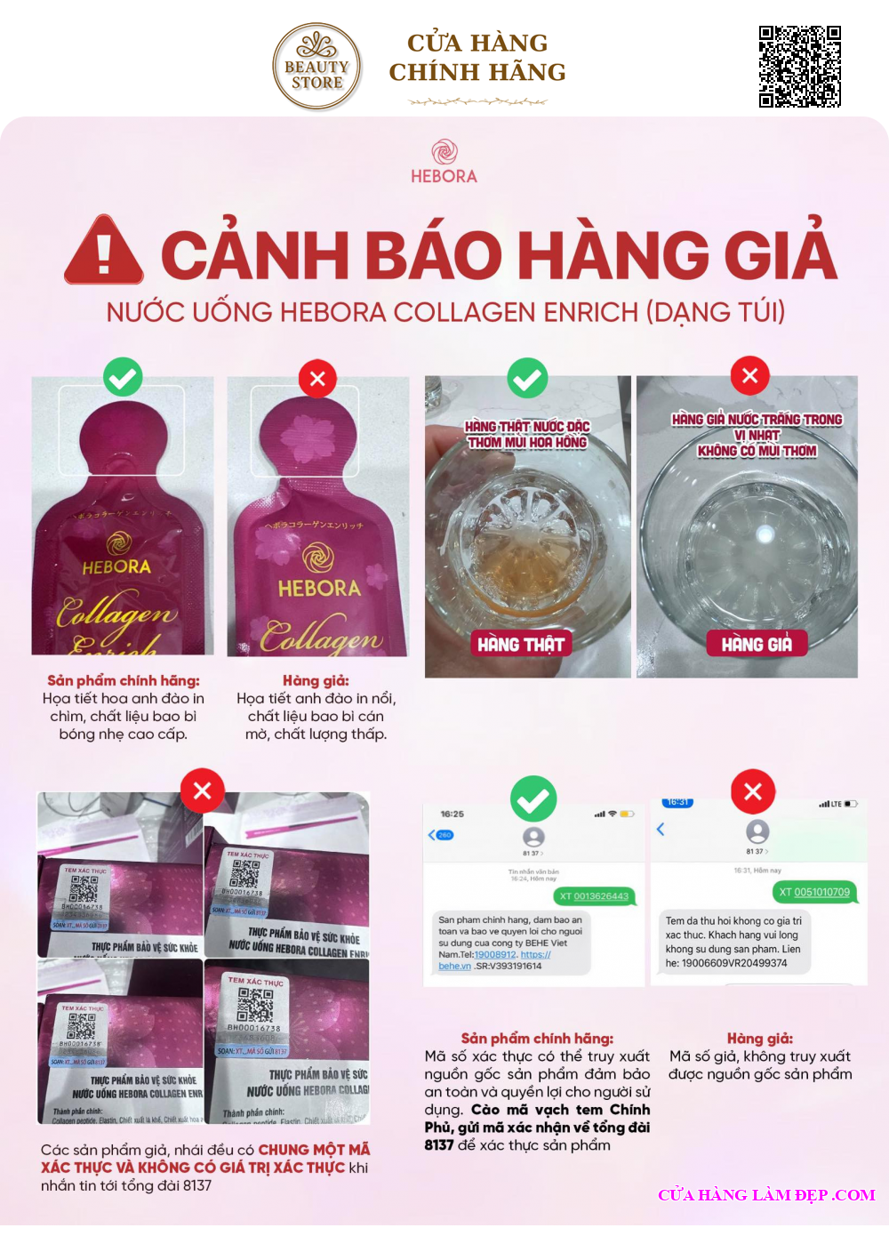 Trên mỗi sản phẩm tại Hệ thống CỬA HÀNG LÀM ĐẸP đều được dán tem chống hàng giả điện tử SMS để đảm bảo quyền lợi của khách hàng.