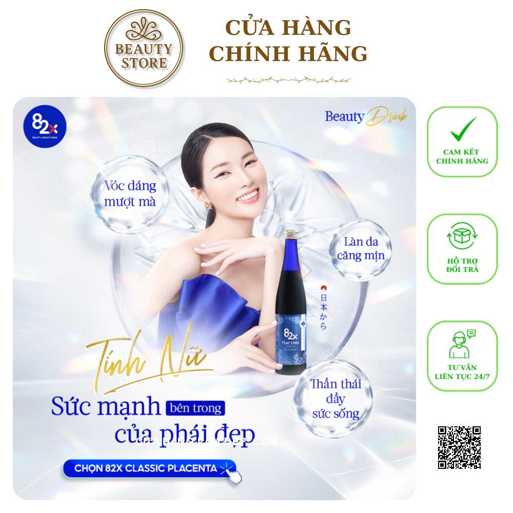 - Nước Uống Tinh Chất Placenta 82x Classic không chỉ mang trọn vẹn tinh hoa dưỡng nhan từ “siêu phẩm” Placenta 82x, nay còn được bổ sung các chiết xuất tự nhiên và thành phần mới như chiết xuất hoa anh đào, cam Nhật Bản, xoài châu Phi...