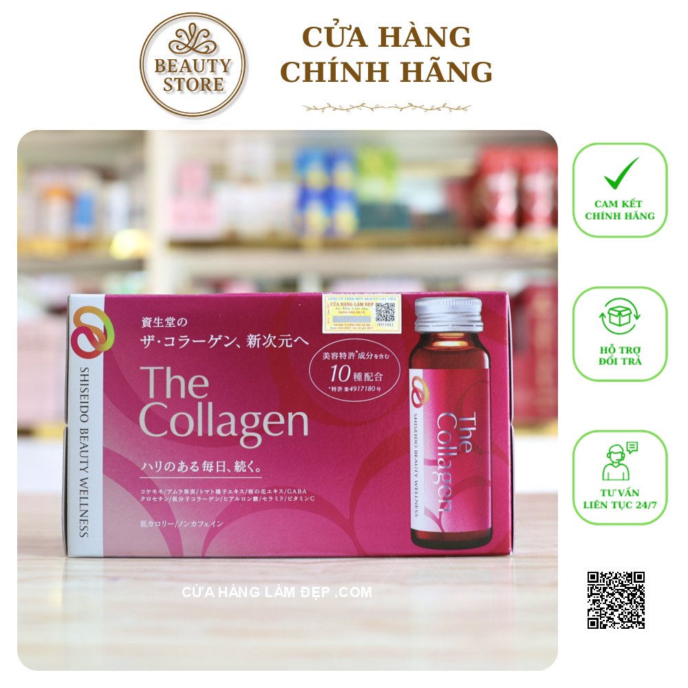 - Collagen là một thành phần giúp cho làn da đàn hồi tốt hơn. Nhưng qua thời gian và tuổi tác, lượng Collagen tự nhiên trong cơ thể sẽ giảm dần khiến làn da bạn mất đi vẻ mịn màng, da xuất hiện những nếp nhăn, khô da và bắt đầu lão hóa. Vì vậy, việc bổ sung Collagen cho cơ thể là rất cần thiết, để cho bạn một làn da mềm mại và mịn màng. - Nước Uống The Collagen Shiseido của Nhật là sản phẩm bổ sung collagen cùng các loại vitamin và dưỡng chất giúp chăm sóc và cải thiện làn da hiệu quả.