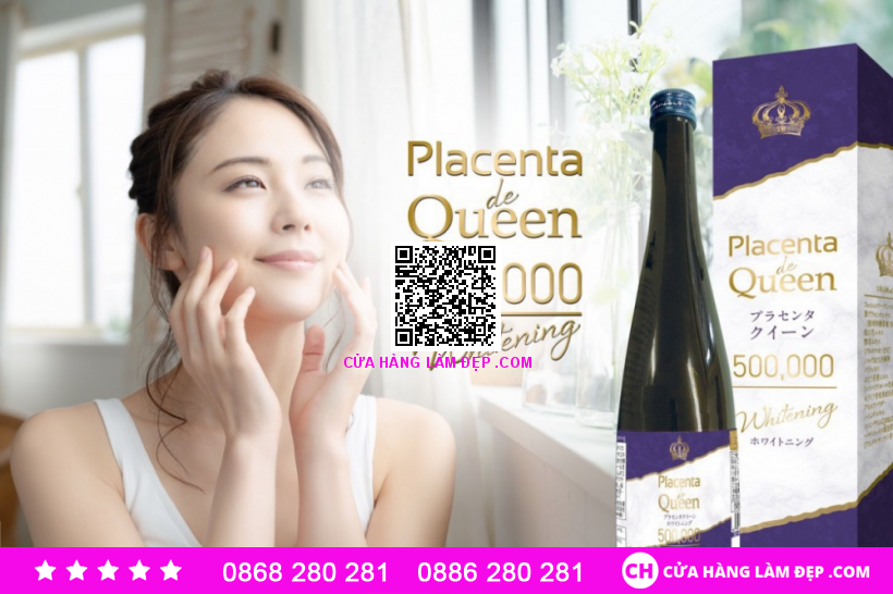 Nước uống đẹp da Placenta de Queen 500,000 với những thành phần thiết yếu giúp mờ nám, bổ sung collagen giúp Đẹp Da làn da toàn thân an toàn và hiệu quả.