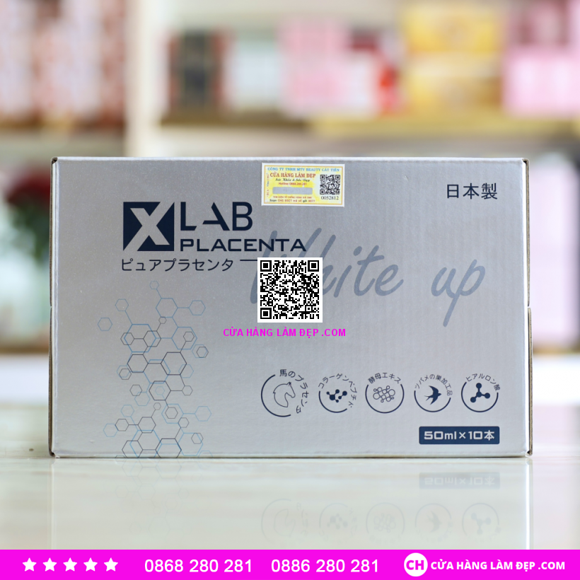 Tại hệ thống cửa hàng làm đẹp, Nước Uống Trắng Da Tinh chất Xlab Placenta White Up có giá: 1,590,000 VND/1 hôp 10 Lọ