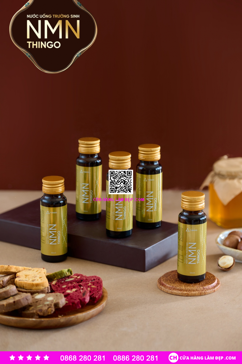Nước uống NMN Thingo – siêu phẩm chăm sóc sức khỏe và sắc đẹp mang đến cho người Việt một phương pháp sống mới, kéo dài tuổi thọ, sống lâu hơn, sống khoẻ hơn, Đẹp Da từ sâu bên trong để đẹp hơn. NMN Thingo chứa hàm lượng NMN tinh khiết lên đến 300mg / chai, sản phẩm có dạng nước nên dễ dàng sử dụng trực tiếp và hiệu quả nhất để hồi phục, sản sinh năng lượng, cải thiện chức năng thể chất, hỗ trợ ngừa lão hóa toàn diện, đưa cơ thể về trạng thái thanh xuân tươi trẻ.