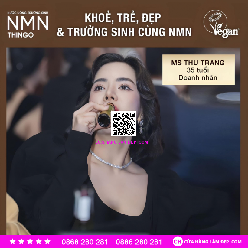Nước Uống Đẹp Da NMN Thingo được khách hàng của Hệ Thống Cửa Hàng Làm Đẹp đánh giá cao.