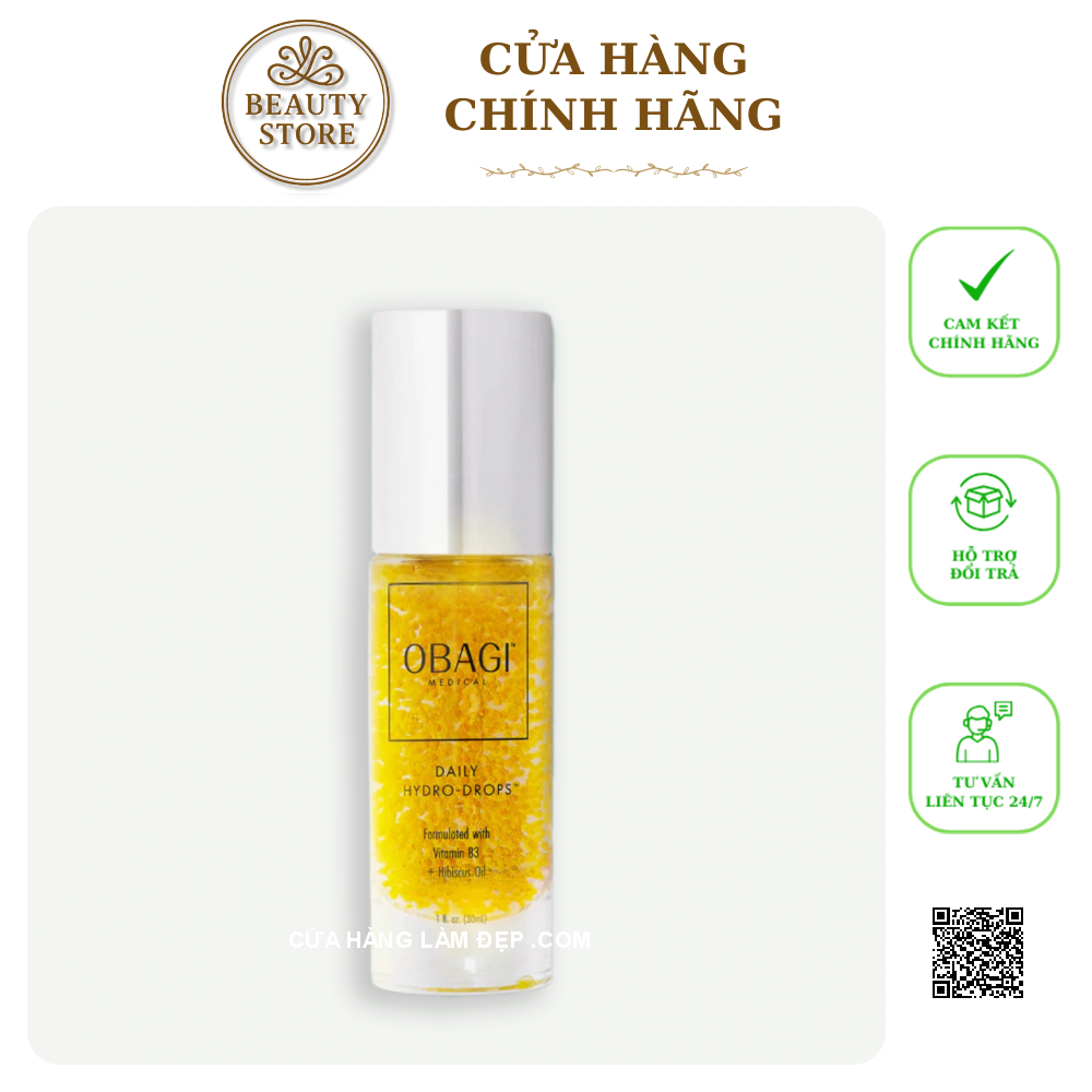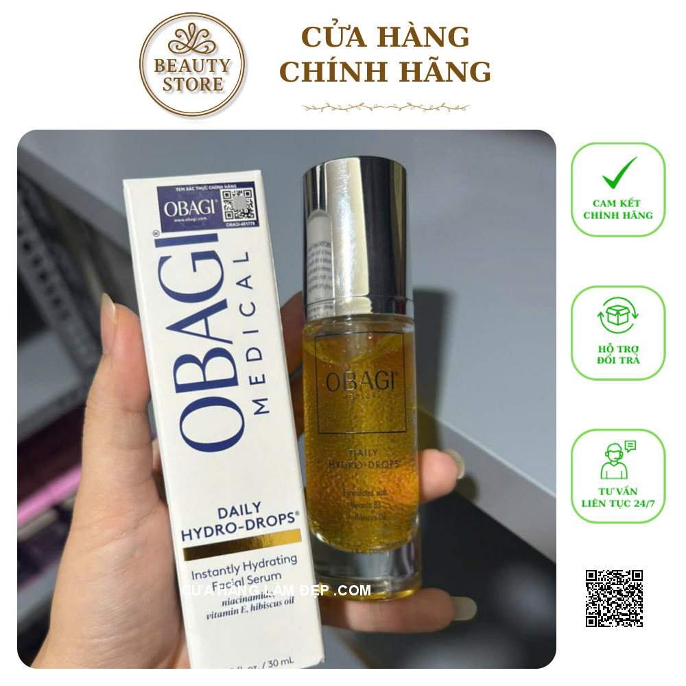 Obagi Daily Hydro-Drops là dòng serum cao cấp đến từ thương hiệu dược mỹ phẩm nổi tiếng Obagi Medical (Mỹ). Sản phẩm ứng dụng công nghệ vi lỏng Isoplentix™, giúp giữ nguyên độ tinh khiết của các hoạt chất và tăng khả năng thẩm thấu vào da. Với thành phần chính là Niacinamide (Vitamin B3) kết hợp cùng tinh dầu hoa Hibiscus và Abyssinian, serum giúp cấp nước tức thì, phục hồi da, làm dịu và cải thiện độ đàn hồi rõ rệt.