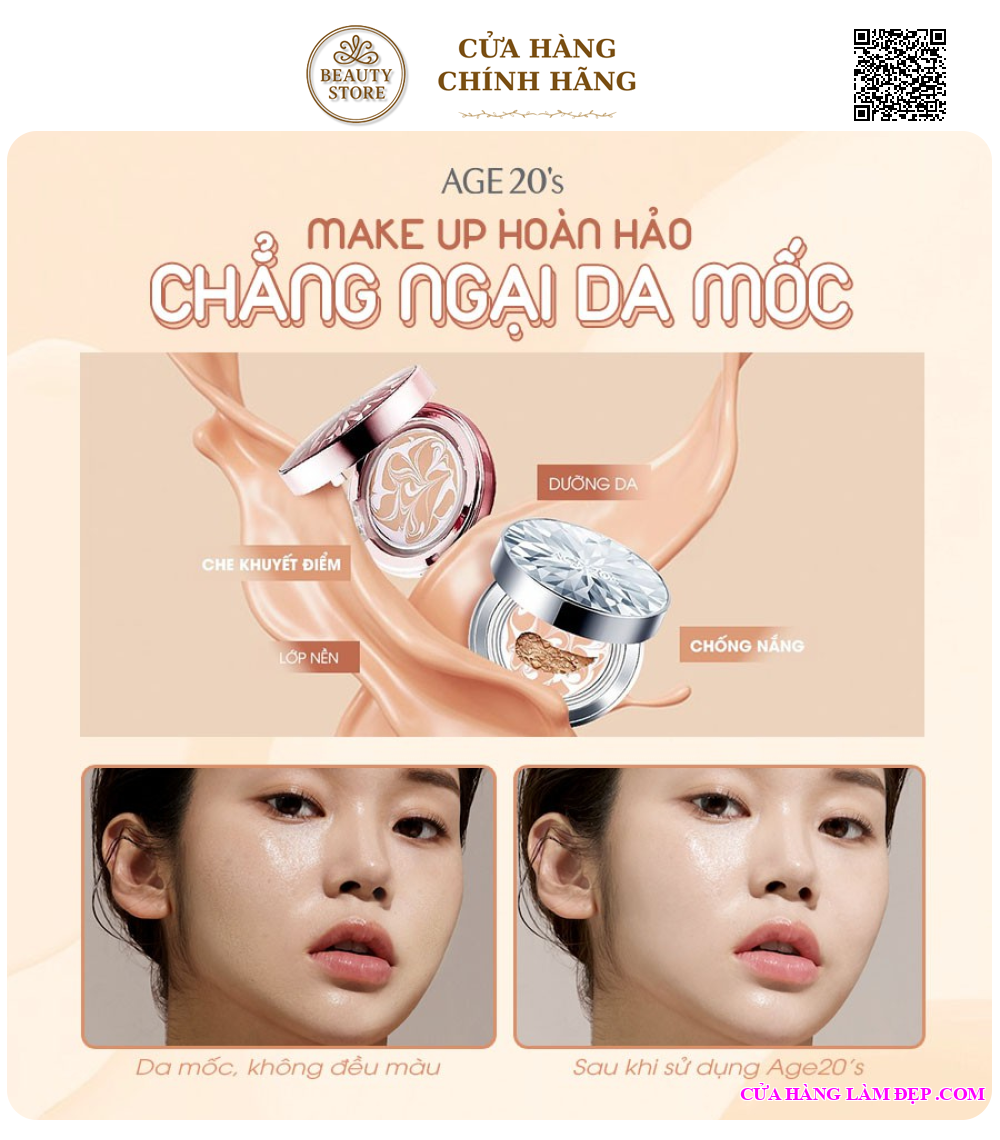- Hình ảnh khách hàng hướng đến người phụ nữ “ở mãi tuổi 20” nên dòng phấn nền lạnh của nhà AGE 20’s có thiết kế nhỏ gọn, trẻ trung, nữ tính với những chi tiết ấn tượng nhưng lại cực kỳ sang trọng.