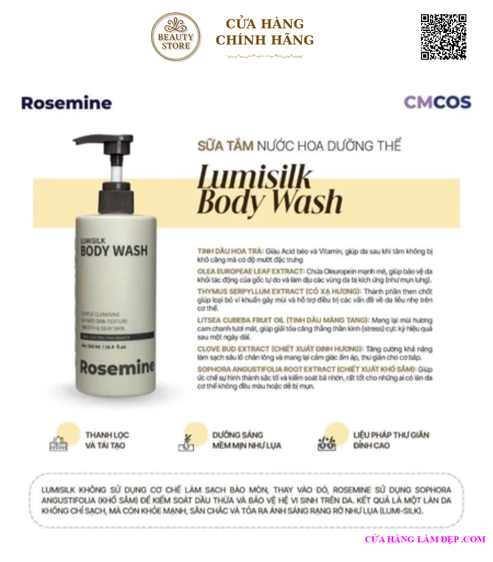 3. Công Dụng Rosemine Lumisilk Body Wash Sữa Tắm Rosemine
