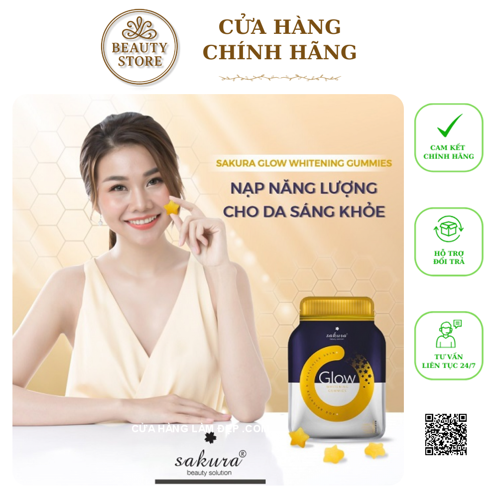 - Tại Hệ thống Cửa hàng làm đẹp, Sakura Glow Whitening Gummies Trắng Da Mờ Nám có giá : 499.000 VNĐ