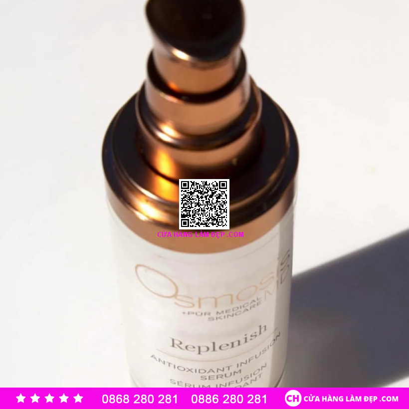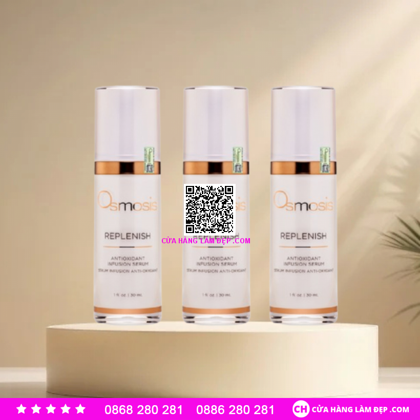 Osmosis REPLENISH Antioxidant Infusion Serum là tinh chất hỗ trợ ngừa oxy hóa cao cấp, được thiết kế để bảo vệ làn da khỏi các tác động tiêu cực từ môi trường như ánh nắng mặt trời, ô nhiễm, khói bụi và tầng ozone. Nhờ hệ thống phân phối dược phẩm độc quyền, sản phẩm cung cấp đồng thời 17 loại chất hỗ trợ ngừa oxy hóa mạnh mẽ thẩm thấu sâu vào lớp biểu bì, ngăn chặn hiệu quả quá trình lão hóa và bảo vệ cấu trúc da khỏi sự tổn thương lâu dài.
