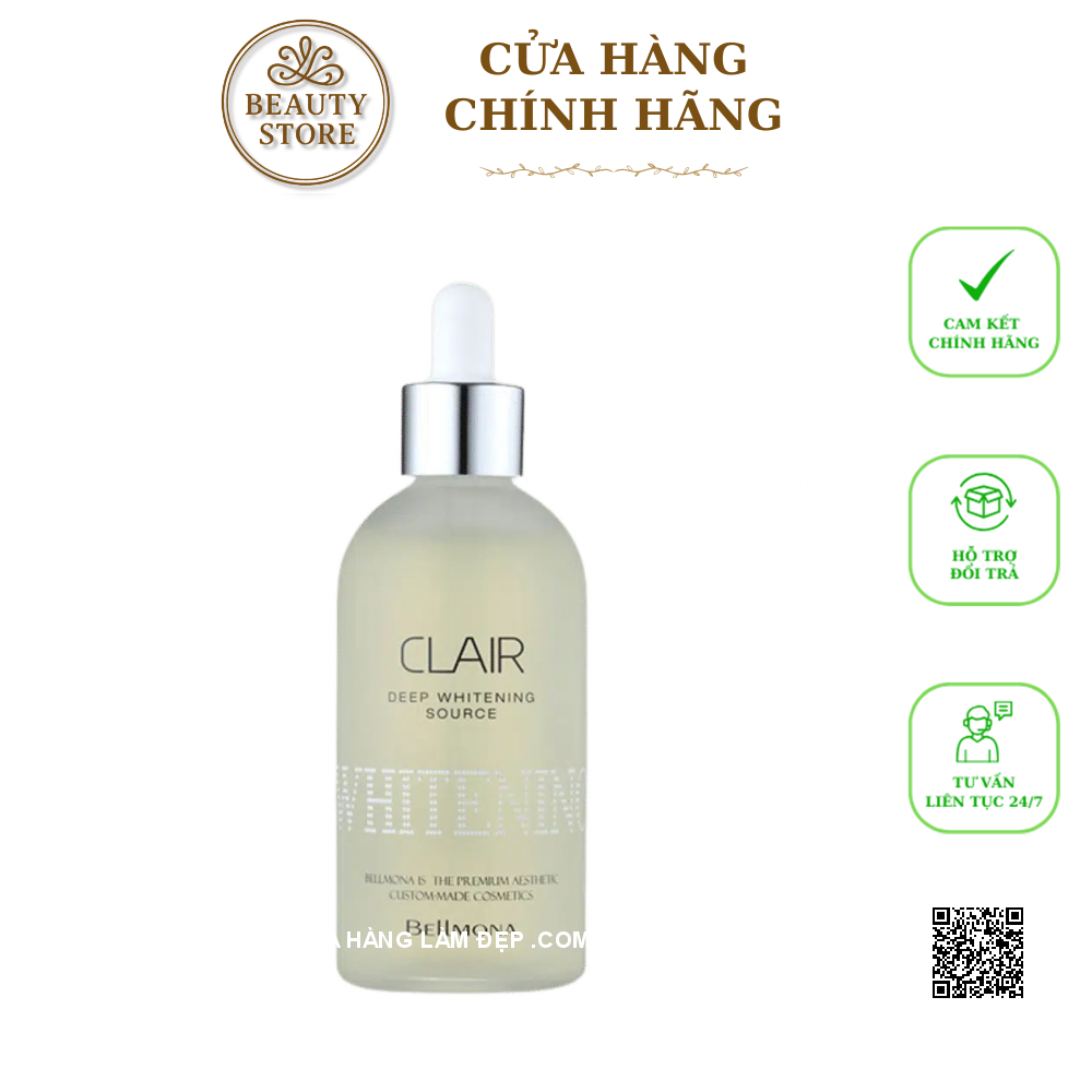 - Serum dưỡng trắng Bellmona Clair Whitening Source chứa các thành phần như Alpha-bisabolol và Niacinamide, giúp cải thiện sắc tố da, làm trắng sáng và đều màu da một cách hiệu quả.