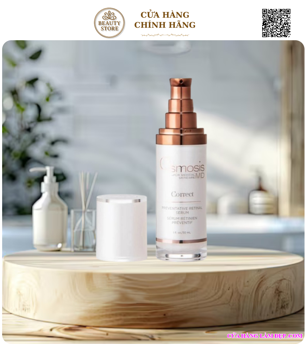 Osmosis Correct Preventative Retinal Serum là “bí quyết” trẻ hóa da với khả năng nuôi dưỡng và tái tạo bề mặt da vượt trội nhờ công nghệ Liposome độc quyền. Serum kết hợp retinaldehyde cùng 9 thành phần tăng sinh collagen và 7 chất chống oxy hóa mạnh, giúp bảo vệ da khỏi tia UVB và củng cố hàng rào bảo vệ da tự nhiên. Kết quả là làn da săn chắc, tươi sáng và mịn màng hơn mỗi ngày. Được phát triển bởi bác sĩ Ben Johnson với hơn 12 năm kinh nghiệm, sản phẩm đánh dấu bước đột phá trong chăm sóc da không độc hại, an toàn và hiệu quả được kiểm nghiệm khoa học.