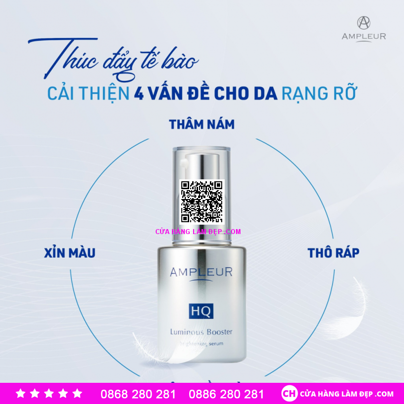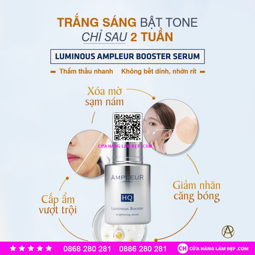 Serum Mờ Nám Ampleur HQ Luminous Booster Brightening Serum được khách hàng của Hệ Thống Cửa Hàng Làm Đẹp đánh giá cao.