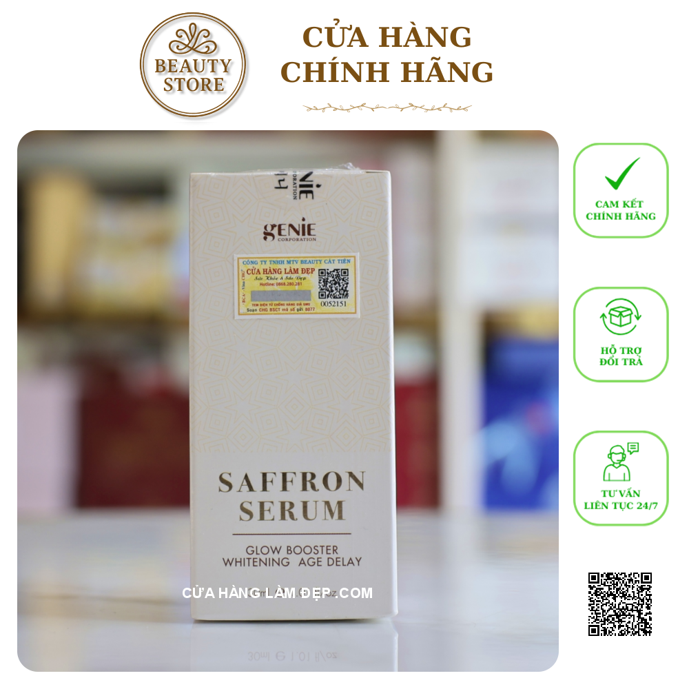 - Serum Nhụy Hoa Nghệ Tây Genie Saffron Serum Glow Booster Whitening Age Delay rất giàu dưỡng chất quý giá từ loại thảo dược đắt đỏ nhất Thế giới. Nhụy hoa nghệ tây đã được chứng minh về khả năng tái tạo, phục hồi da, Hỗ Trợ Ngừa Lão Hóa.