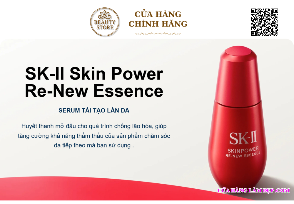 Serum SK-II Skin Power Re-New Essence là sản phẩm chống lão hóa cao cấp đến từ thương hiệu Nhật Bản SK-II, nổi tiếng với hơn 40 năm nghiên cứu về độ săn chắc và trẻ hóa làn da. Sản phẩm chứa công thức độc quyền Pitera™ cùng nhiều hoạt chất dưỡng da chuyên sâu, giúp tái tạo sức mạnh làn da, cải thiện độ đàn hồi, cấp ẩm đa tầng và làm mờ nếp nhăn chỉ sau vài tuần sử dụng.
