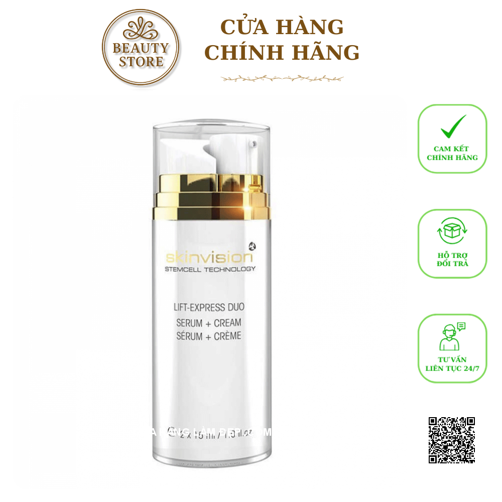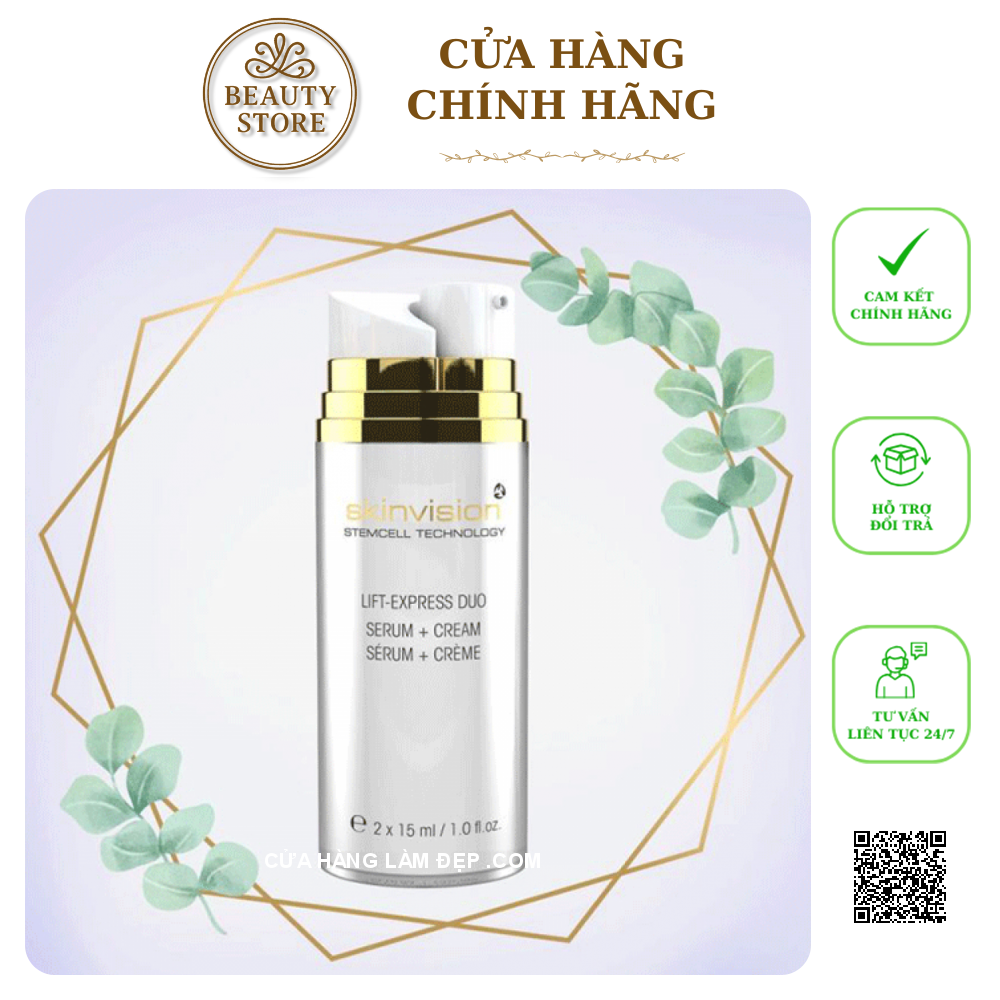 - Những vết nhăn hằn sâu, da kém săn chắc sẽ khiến bạn thiếu tự tin, trông già nua thiếu sức sống. Serum Hỗ Trợ Ngừa Lão Hóa công nghệ Tinh Chất Tinh chất thực vật Skinvision Stemcell Technology Lift Express Duo sẽ giúp bạn nhanh chóng cải thiện tình trạng trên, nhanh chóng trả lại cho bạn làn da tươi trẻ, tràn đầy sức sống.