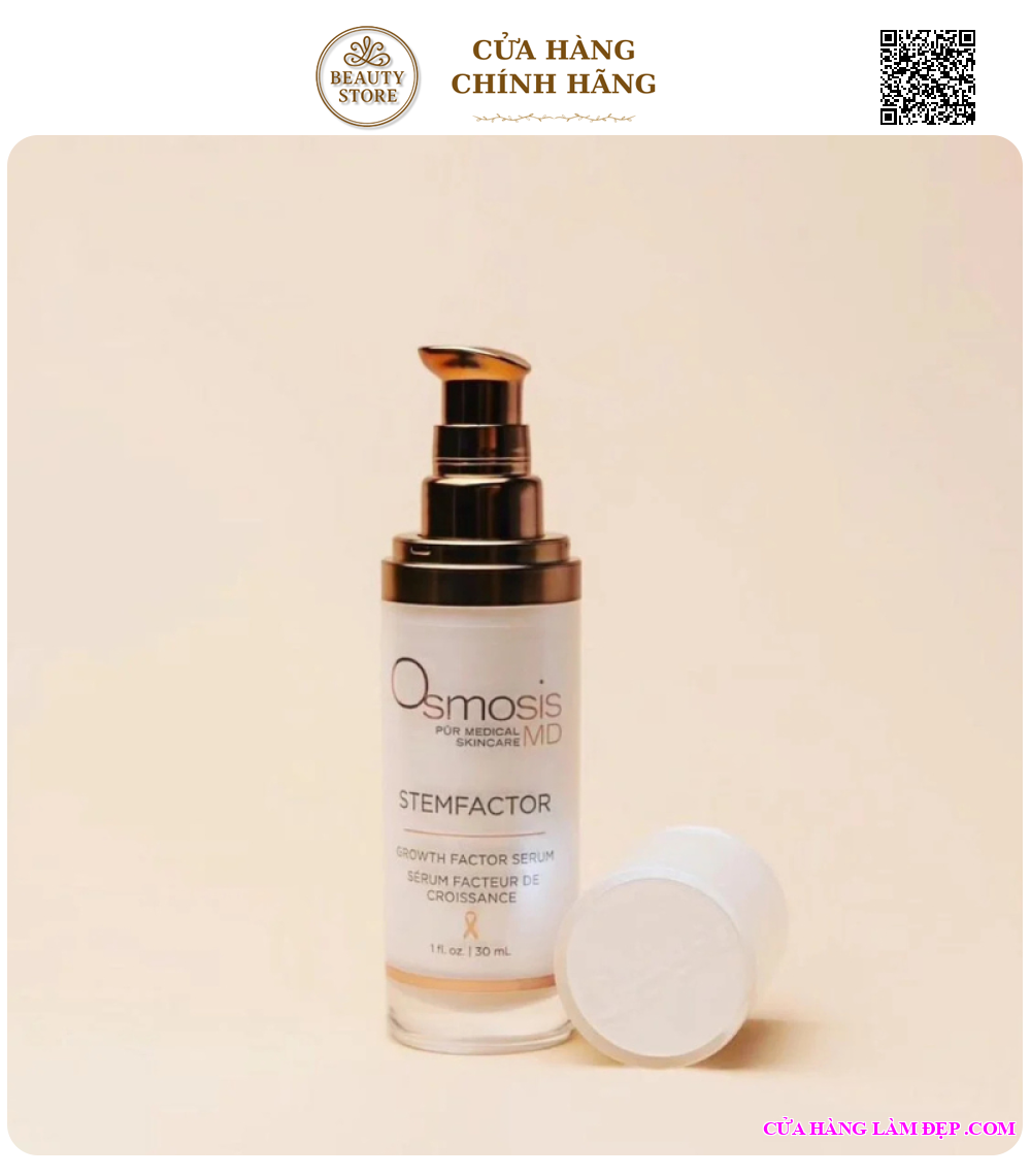 Serum OSMOSIS STEMFACTOR là công nghệ chăm sóc da tiên tiến, ứng dụng exosome và hơn 600 yếu tố tăng trưởng giúp nuôi dưỡng sâu sắc Tinh Chất Tế Bào và nguyên bào sợi. Nhờ đó, serum kích thích tái tạo collagen và elastin, thúc đẩy quá trình phục hồi da tổn thương và làm giảm rõ rệt các dấu hiệu lão hóa như nếp nhăn, thâm nám và mất đàn hồi. Sản phẩm giúp da trở nên săn chắc, mịn màng và tươi sáng hơn từ bên trong, đồng thời bảo vệ da khỏi tác động của môi trường, đem lại vẻ trẻ trung lâu dài.