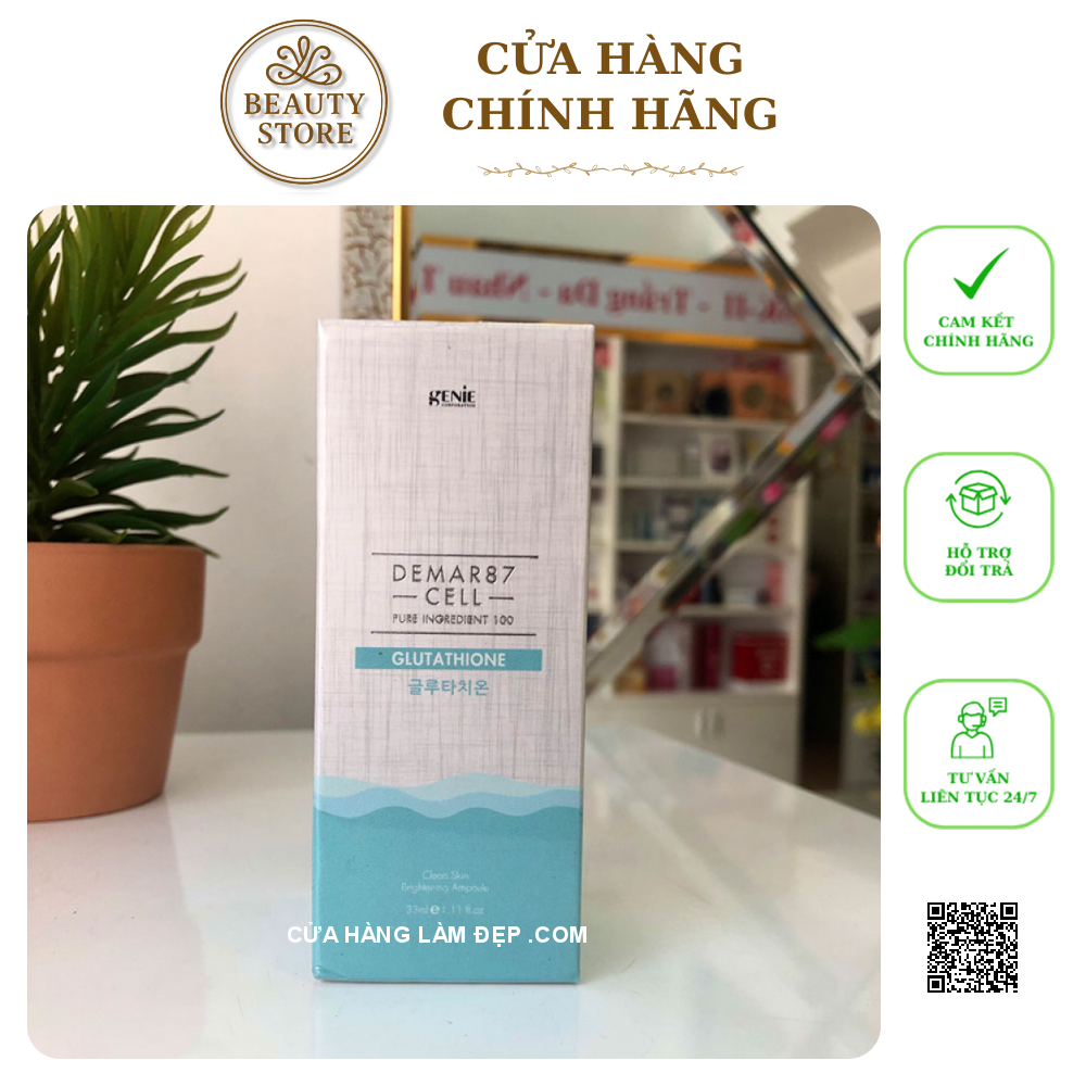 - Tại Hệ thống Cửa hàng làm đẹp, Huyết Thanh Dưỡng Trắng Genie Demar87 Cell Glutathione có giá 990.000VNĐ
