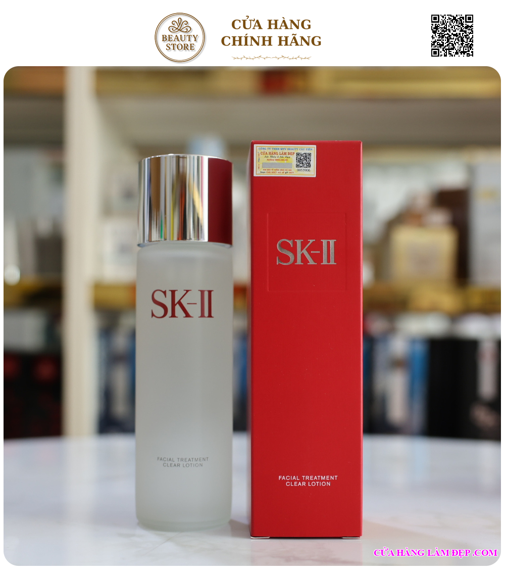 Bước 2: SK-II Facial Treatment Clear Lotion. Thấm vào bông và lau nhẹ toàn mặt để làm sạch sâu