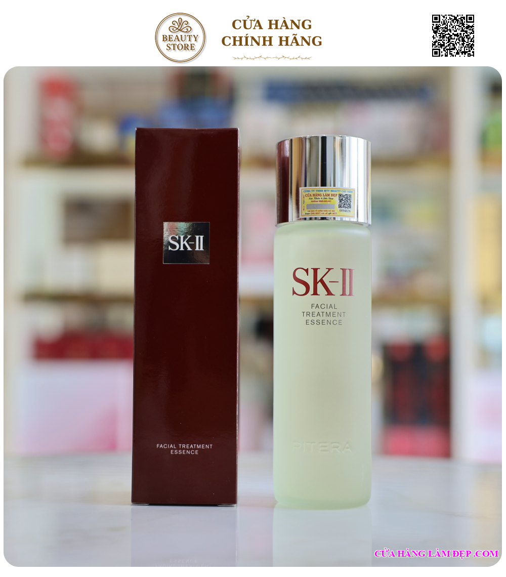 Bước 3: SK-II Facial Treatment Essence. Đổ ra tay hoặc bông, vỗ nhẹ để tinh chất thẩm thấu