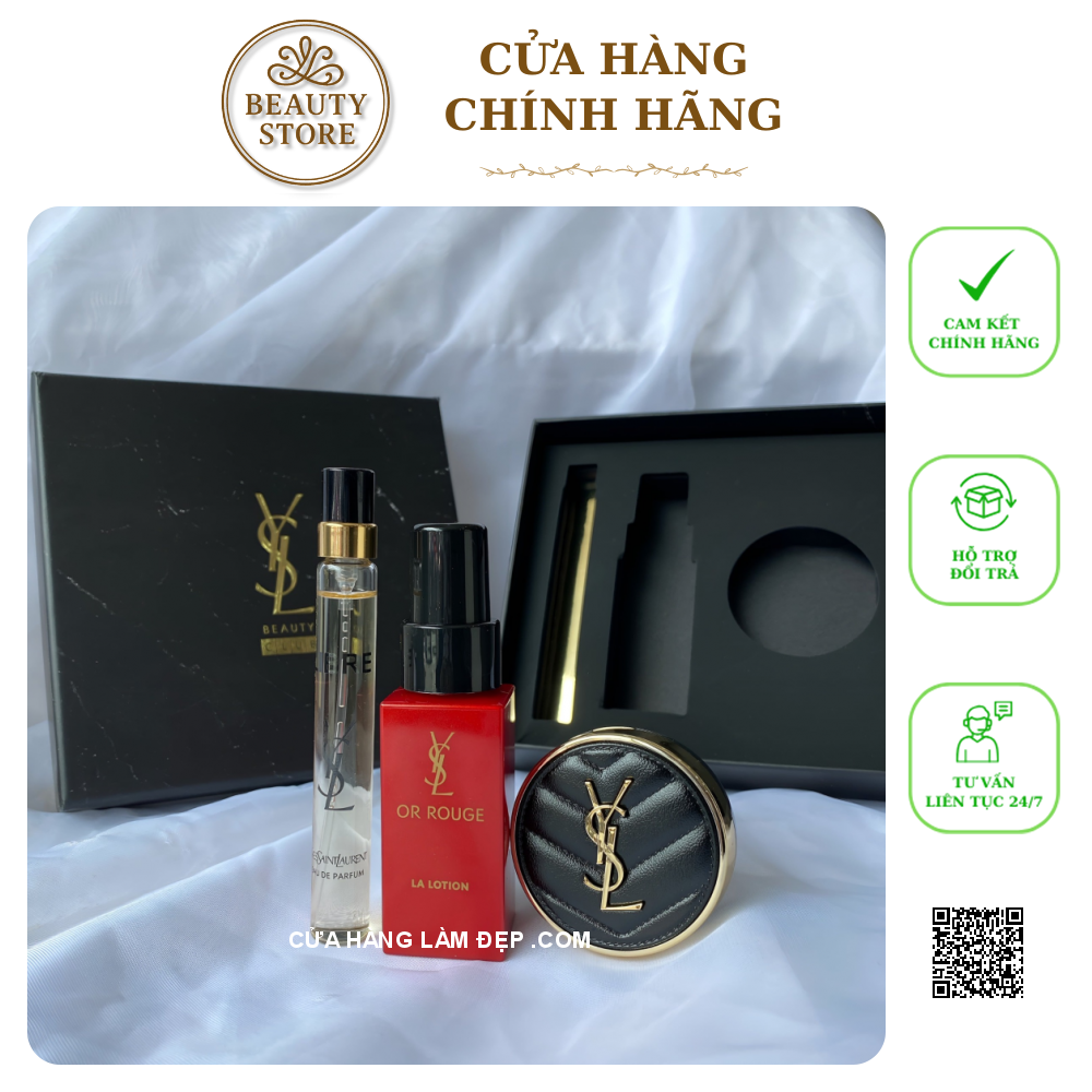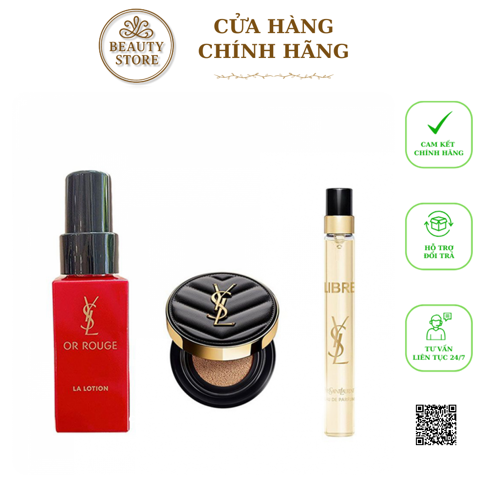 - Trọn bộ 3 sản phẩm HOT nhất nhà YSL: lotion dưỡng da, phấn nước và nước hoa Libre EDP.